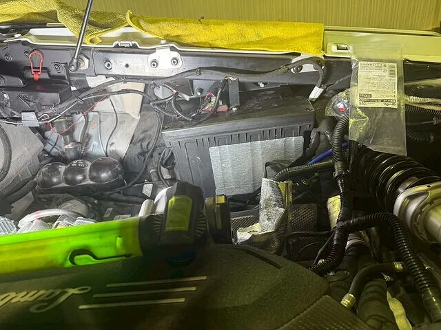 内装分解を行い、電装系や配線の状態をチェックしながら、純正部品や安全装置に影響が出ないよう慎重に作業を進めています。