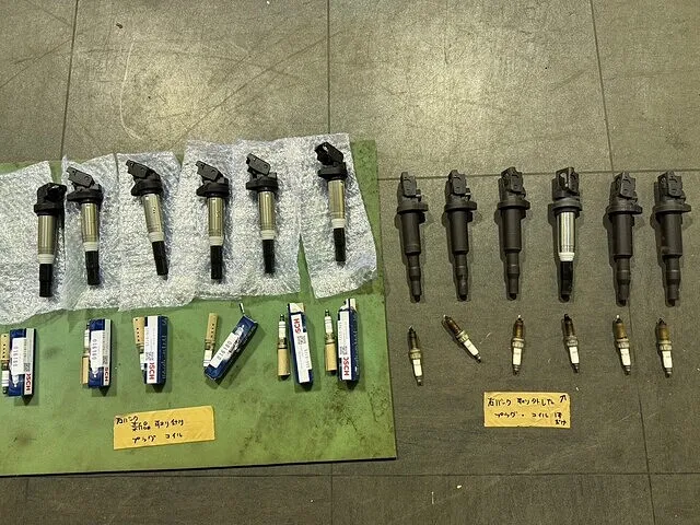 また、エンジン点検の過程で、スパークプラグおよびダイレクトイグニッションコイルの経年劣化も確認できました。