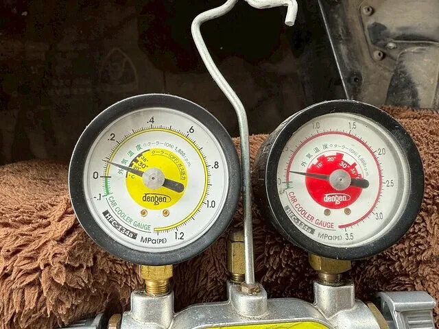 すると、規定値よりも圧力が低く、エアコンガスが正常に循環していないことが判明しました。
